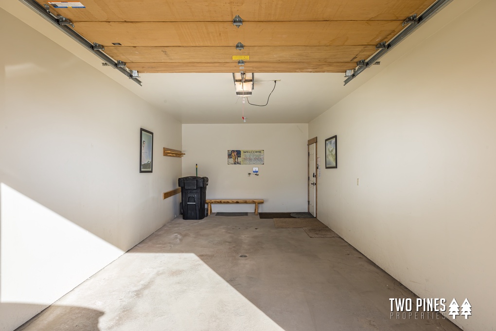 The townhome has an attached 1-car garage. From the garage, there is a door that leads to the main floor. There is also a front door entry just to the right of the garage.